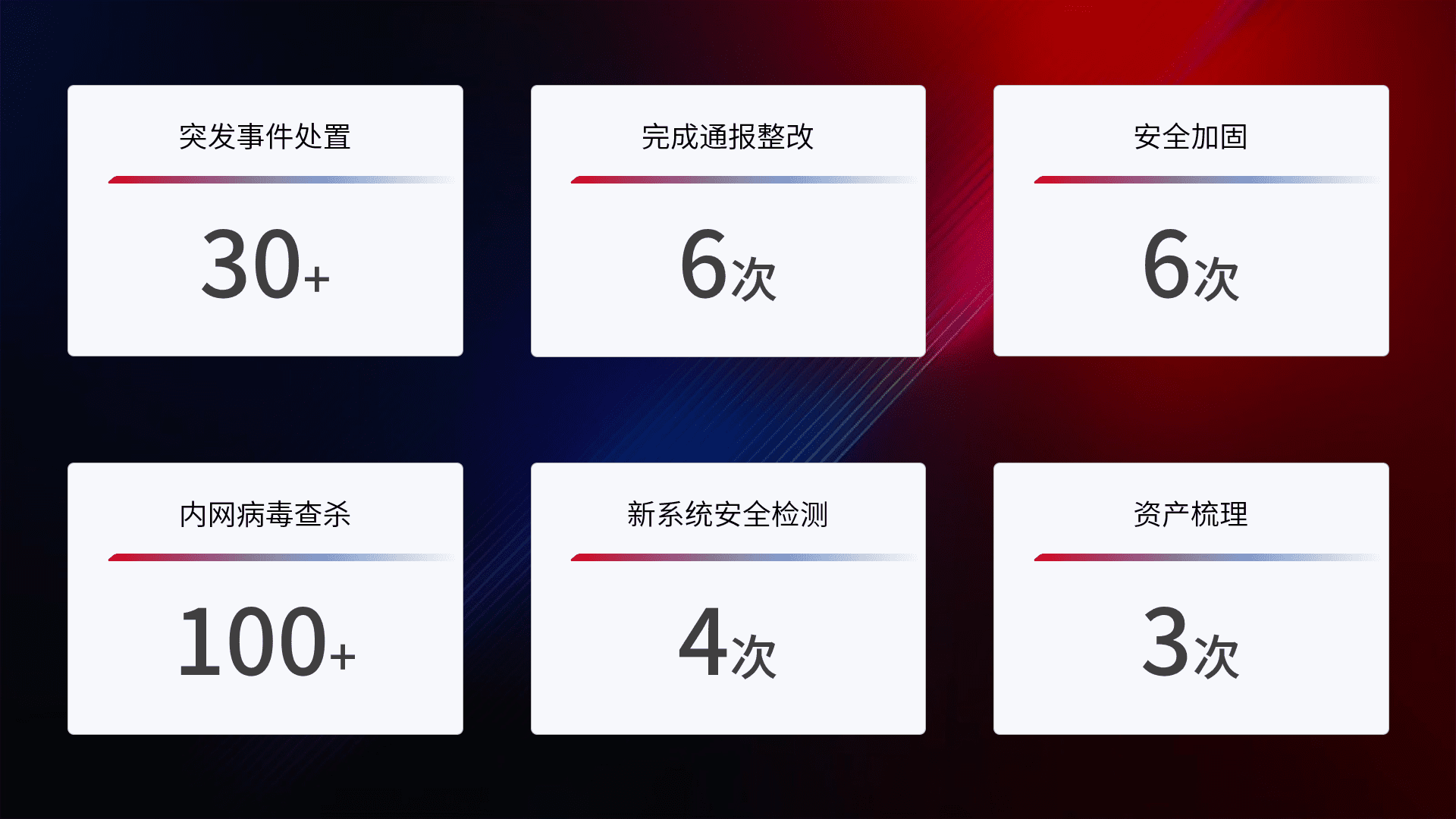 网络安全加固与风险管理:通过技术加固手段,,如加强区域隔离,,,缩减攻击内网横向移动的范围;优化现有网络安全管理制度,,,,降低网络威胁暴露面,,,,减少被黑客攻击的可能性。。